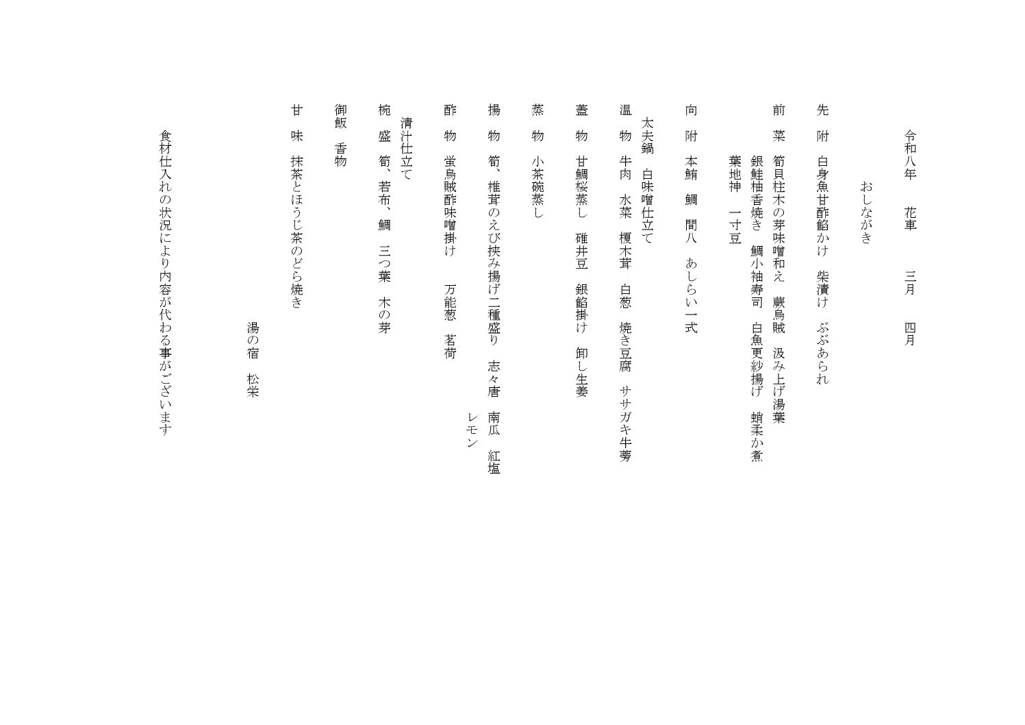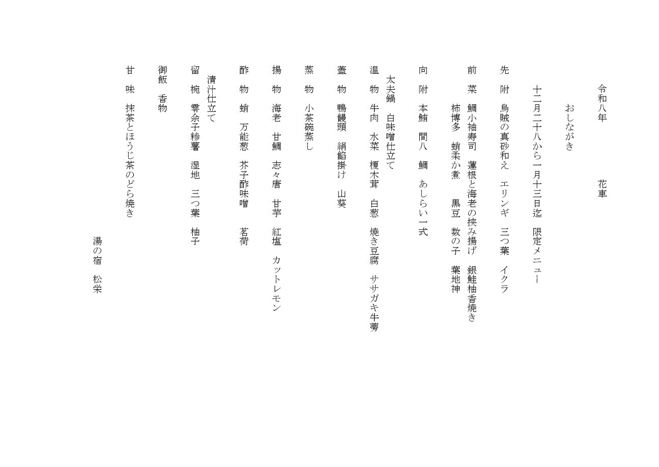 夕食はお部屋ではなく、お食事処となります。朝食は、館内レストラン「花車」でご用意いたします。